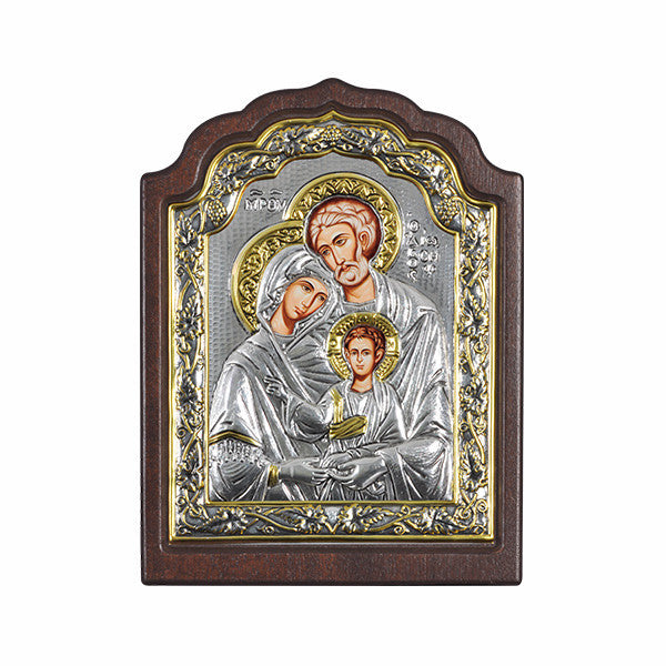 Silkscreen icon with silver frame and wooden casing, locally gilded.